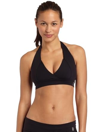 The cross-front V design of this bra creates support while the halter neckline flatters your figure. It's fully-lined, features a band under the bust, and is made of premium Supplex and Lycra for the best available support. The fit of this bra works best on small-to-medium body types.
